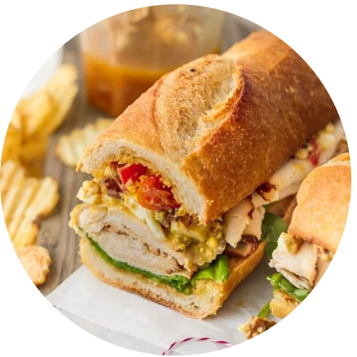 Chicken, lettuce, onion, tomatoes, mushrooms ,mozzarella cheese and mayo