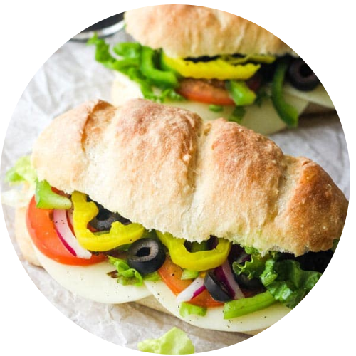 Lettace,tomato,onion,tomatoes,mushrooms,mozzarella cheese and mayo