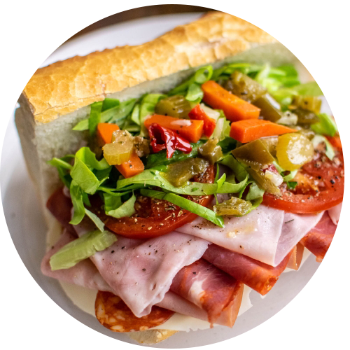 Salami, pepperoni, ham, lettuce, tomatoes, mozarella cheese and mayo
